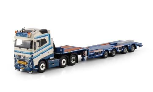 WSI 01-4311 SCHOONES B.V.; VOLVO FH5 GLOBETROTTER 6X2 TWIN STEER SEMI WHEEL WELL LOW LOADER - 4 AXLE