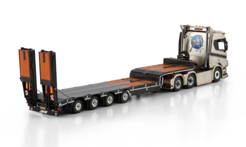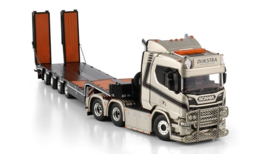 WSI 01-4479 DIJKSTRA; SCANIA R NORMAL CR20N 6X2 TAG AXLE SEMI LOW LOADER WITH RAMPS - 4 AXLE 1:50