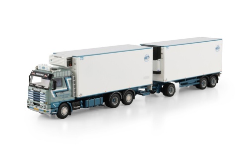 WSI 01-4563 HGT; SCANIA 3 SERIES STREAMLINE RIGED REEFER TRUCK 6X2 TAG AXLE RIGED REEFER DRAWBAR
