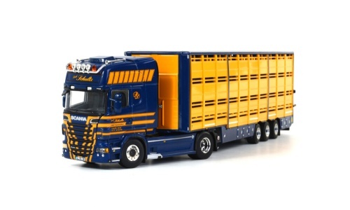 WSI 01-1365 DIRK SCHULTZ; SCANIA R(6) TOPLINE 4X2 LIVESTOCKTRAILER 1:50