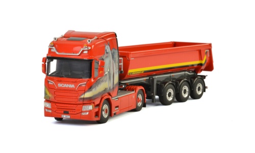 WSI 01-4063 HEUVELMAN GSO; SCANIA R HIGHLINE 6X2 TWIN STEER HALFPIPE TIPPER TRAILER - 3 AXLE 1:50