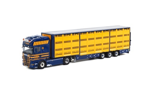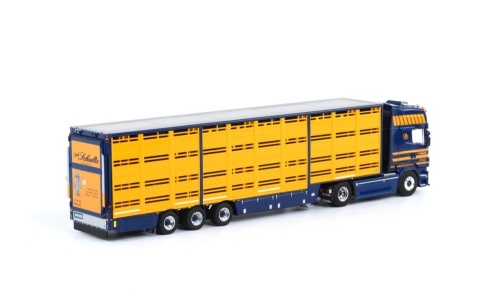 WSI 01-1365 DIRK SCHULTZ; SCANIA R(6) TOPLINE 4X2 LIVESTOCKTRAILER 1:50