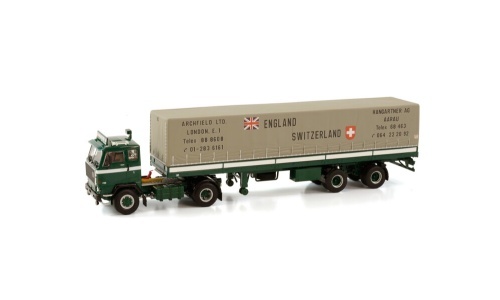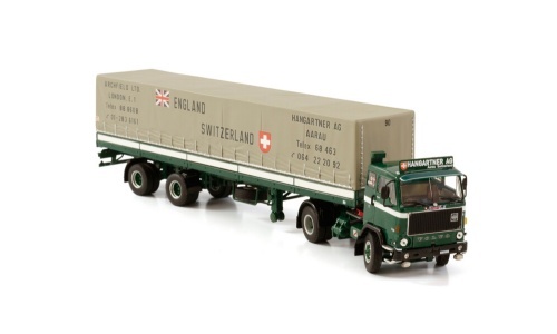 WSI 01-3998 HANGARTNER AG; VOLVO F89 4X2 CLASSIC CURTAINSIDE TRAILER - 2 AXLE 1:50