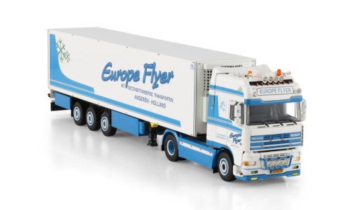 WSI 01-4743 EUROPE FLYER; DAF 95XF SUPER SPACE CAB 4X2 REEFER TRAILER - 3 AXLE 1:50