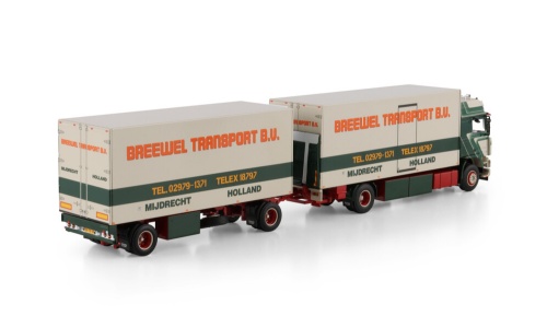 WSI 01-4600 BREEWEL; VOLVO F12 GLOBETROTTER RIGED BOX TRUCK 4X2 RIGED BOX DRAWBAR TURNTABLE TRAILER