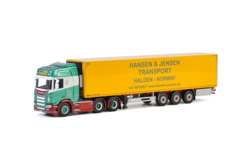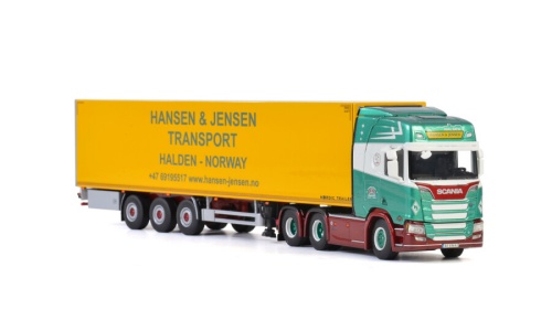 WSI 01-2652 HANSEN & JENSEN; SCANIA R HIGHLINE CR20H 6X2 TAG AXLE REEFER TRAILER - 3 AXLE 1:50