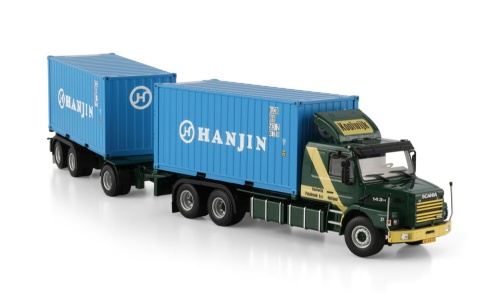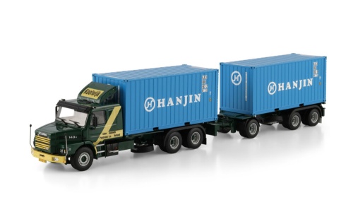 WSI 01-4913 KOOLWIJK; SCANIA 3 SERIES TORPEDO 6X2 TAG AXLE RIGED CONTAINER FRAME TRUCK DRAWBAR TRAIL